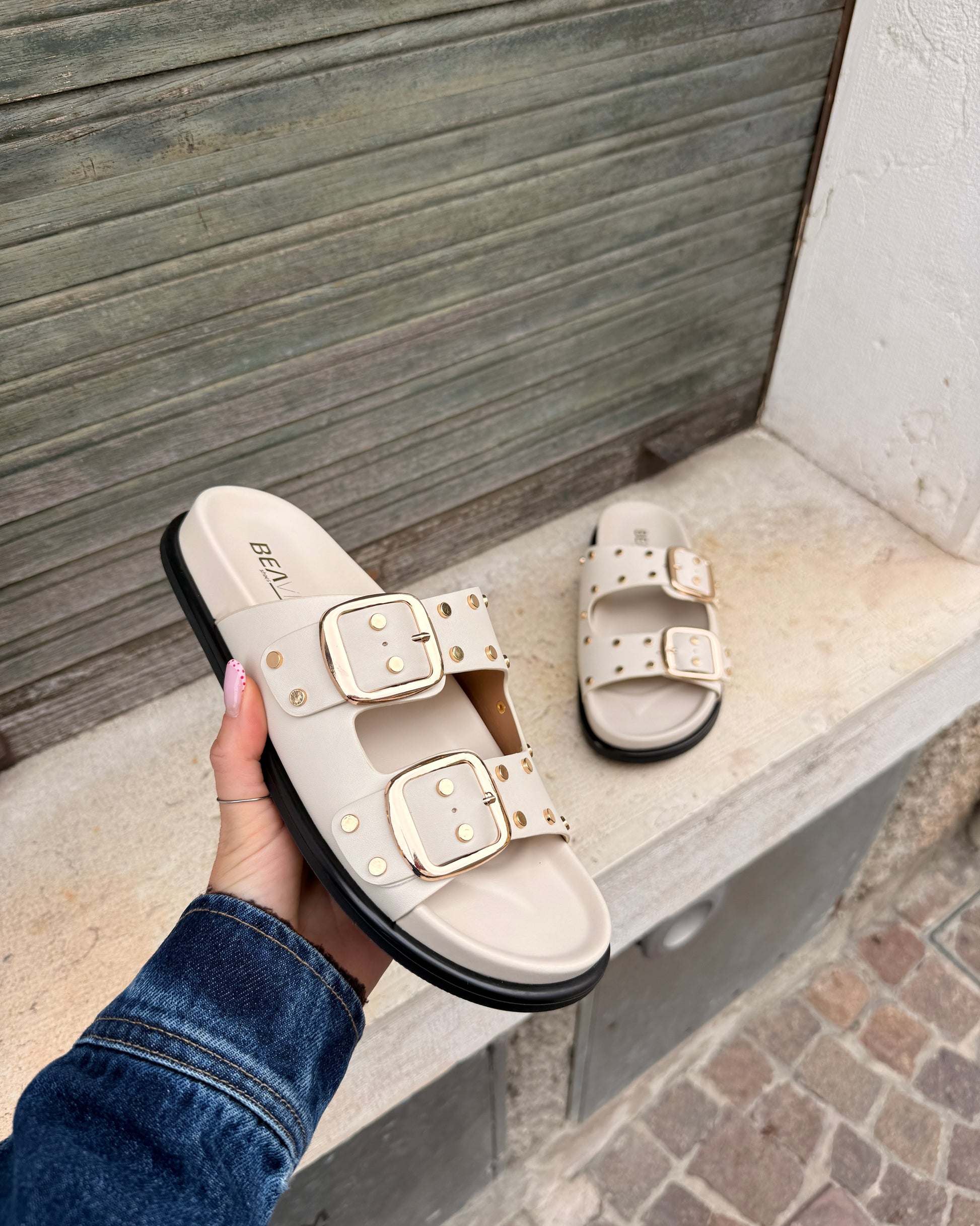 Ciabatta Veronica: eleganza e comfort in ogni passo. Questo modello sofisticato combina la comodità di una ciabatta con dettagli oro che catturano la luce, perfetto per chi desidera uno stile raffinato. La silhouette morbida e avvolgente garantisce il massimo relax, mentre i particolari dorati aggiungono un tocco di lusso al tuo look quotidiano. Ideale per momenti di puro benessere senza rinunciare all'eleganza.