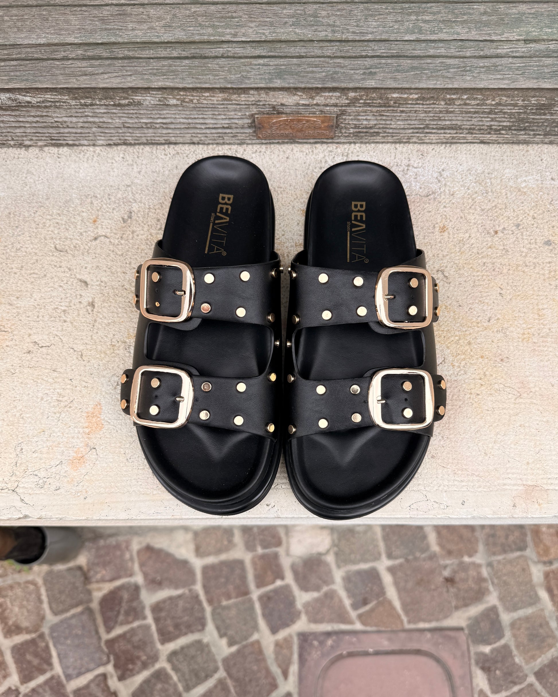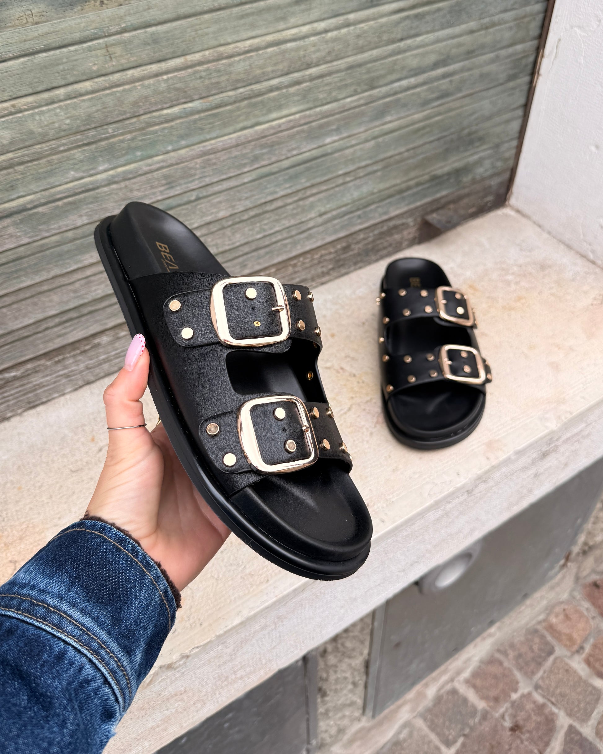 Ciabatta Veronica: eleganza e comfort in ogni passo. Questo modello sofisticato combina la comodità di una ciabatta con dettagli oro che catturano la luce, perfetto per chi desidera uno stile raffinato. La silhouette morbida e avvolgente garantisce il massimo relax, mentre i particolari dorati aggiungono un tocco di lusso al tuo look quotidiano. Ideale per momenti di puro benessere senza rinunciare all'eleganza.