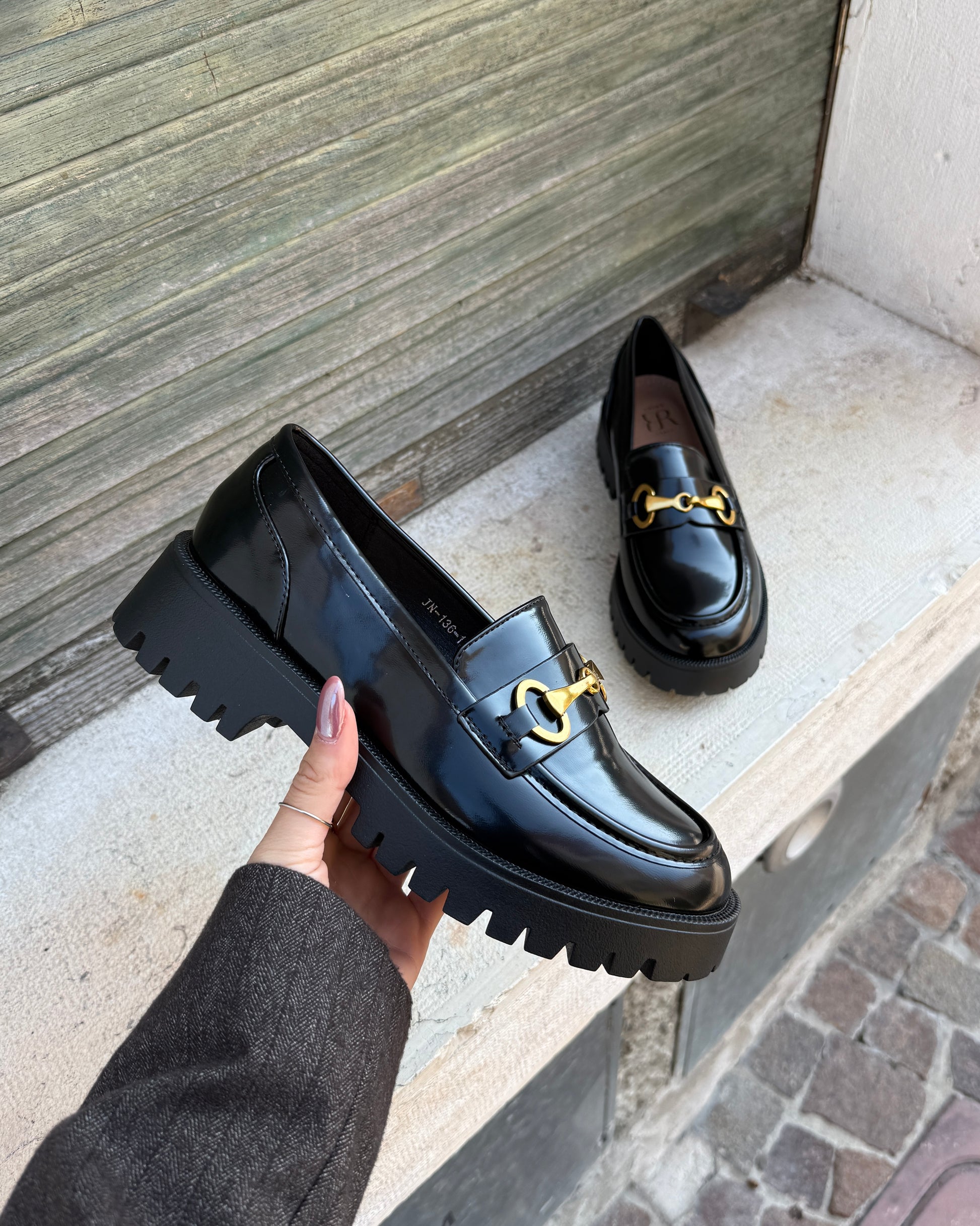 Aggiungi un tocco giocoso al tuo guardaroba con il Mocassino Erica! Questo elegante mocassino presenta una suola spessa in carrarmato per maggiore aderenza e audacia, abbinata a una fibbia dorata lucida che cattura l'attenzione. Comodo e sicuro di sé, è perfetto per uscire con stile, stile e carattere.