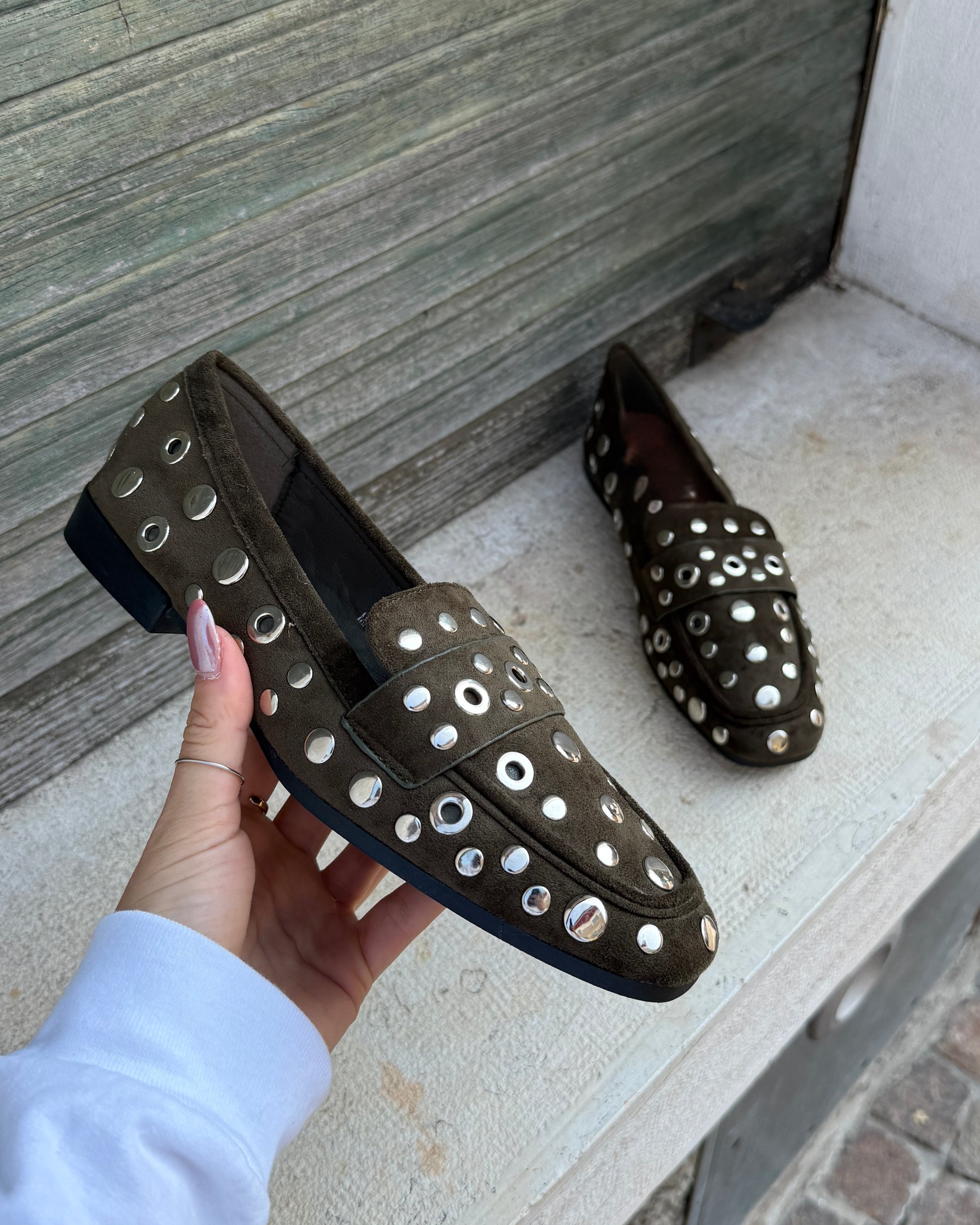 Il Mocassino Liverpool Verde, realizzato in finta pelle di alta qualità, unisce stile e praticità. Le borchie argento aggiungono un tocco di carattere sofisticato, mentre la calzata regolare garantisce comfort e adattabilità per tutto il giorno. Perfetto per chi cerca eleganza senza rinunciare alla comodità.