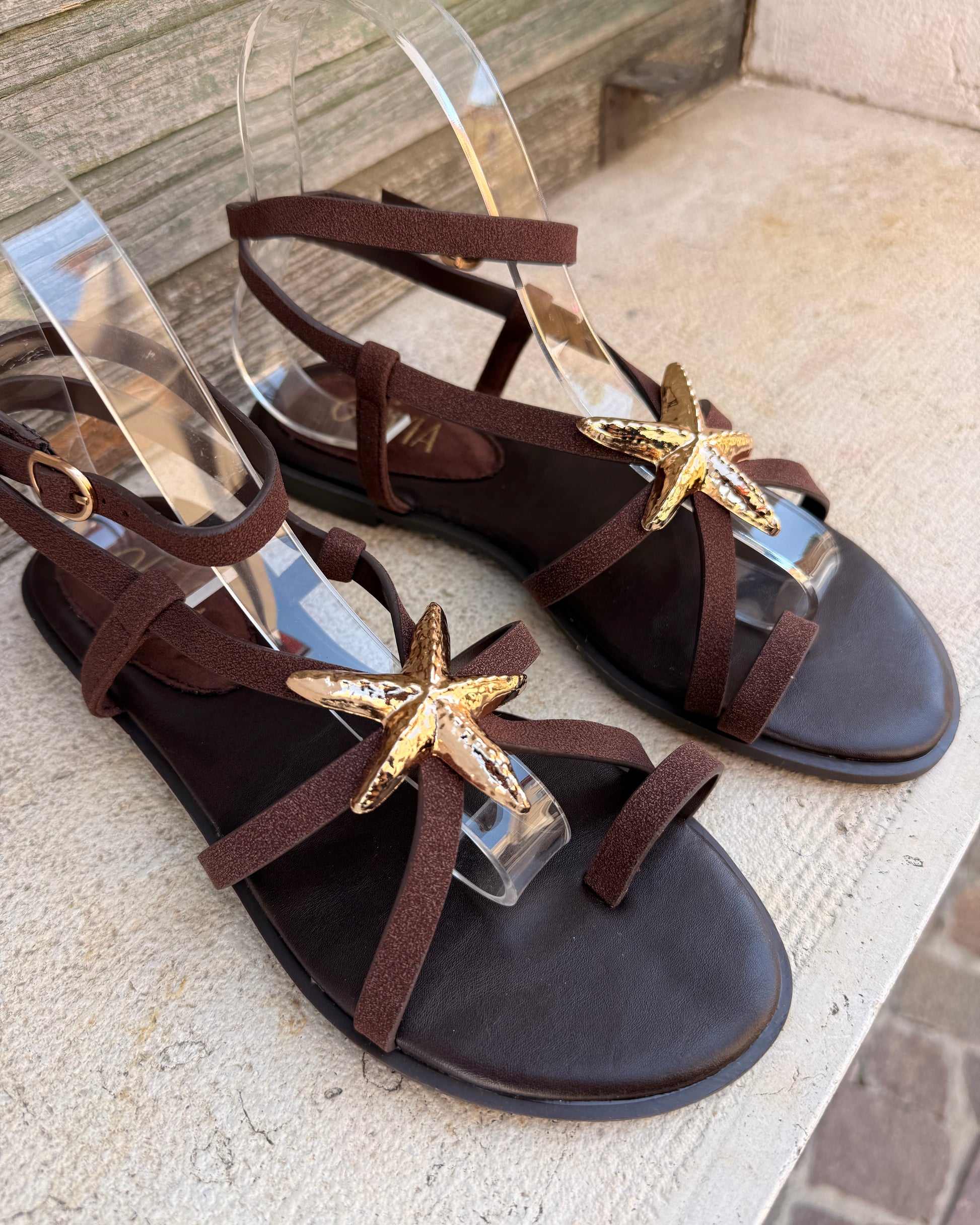 Sandalo Carlotta: eleganza e comfort per i tuoi piedi. Questo sandalo allacciato alla caviglia combina uno stile sofisticato con una praticità quotidiana. Il dettaglio a forma di stella marina aggiunge un tocco di originalità e personalità al design, rendendolo perfetto per chi ama i particolari unici. La chiusura alla caviglia garantisce una vestibilità sicura e stabile durante tutta la giornata. Ideale per occasioni casual e semi-formali, questo sandalo si abbina facilmente a qualsiasi outfit della tua collezione.