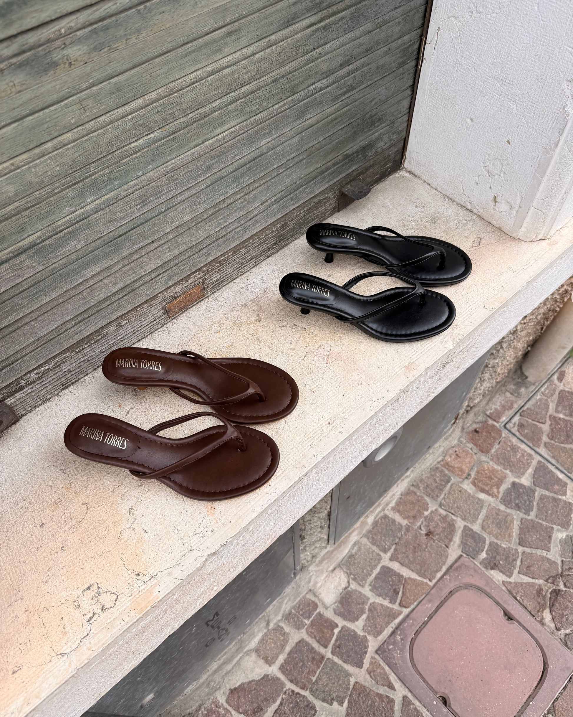 Tacco Maya è il sandalo infradito che unisce eleganza e comfort. Con il suo delicato kitten heel, offre l'altezza giusta per allungare la silhouette senza sacrificare la praticità. Perfetto per le giornate estive, le serate casual o gli aperitivi in città. La suola morbida e il design minimalista lo rendono versatile e facile da abbinare con qualsiasi outfit. Un must-have per chi ama lo stile senza compromessi.