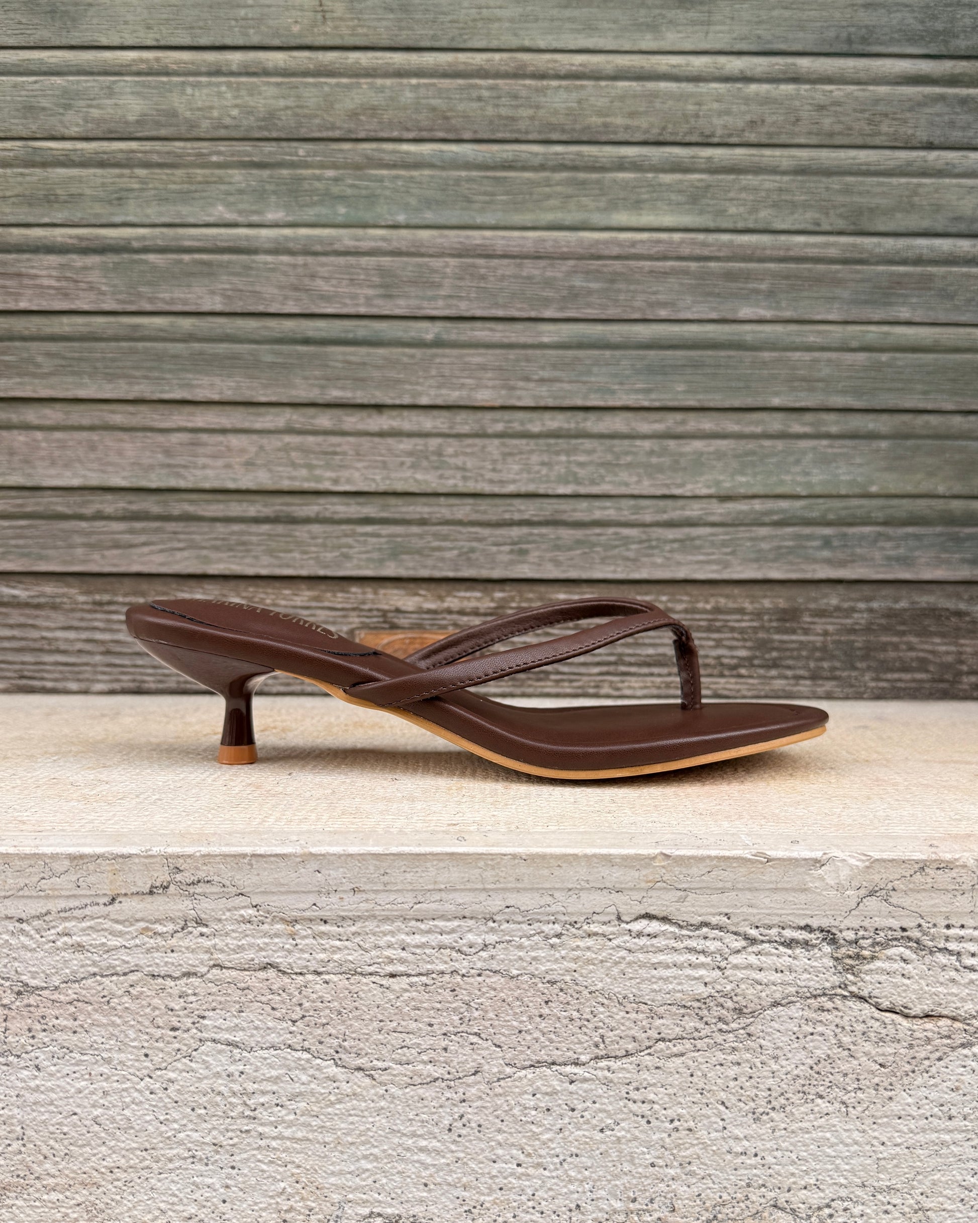 Tacco Maya è il sandalo infradito che unisce eleganza e comfort. Con il suo delicato kitten heel, offre l'altezza giusta per allungare la silhouette senza sacrificare la praticità. Perfetto per le giornate estive, le serate casual o gli aperitivi in città. La suola morbida e il design minimalista lo rendono versatile e facile da abbinare con qualsiasi outfit. Un must-have per chi ama lo stile senza compromessi.